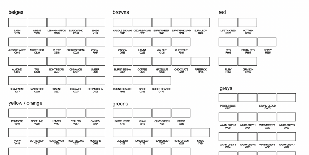 - the "official" promarker color chart sorted by hue and value with the original names but in a more intuitive order!