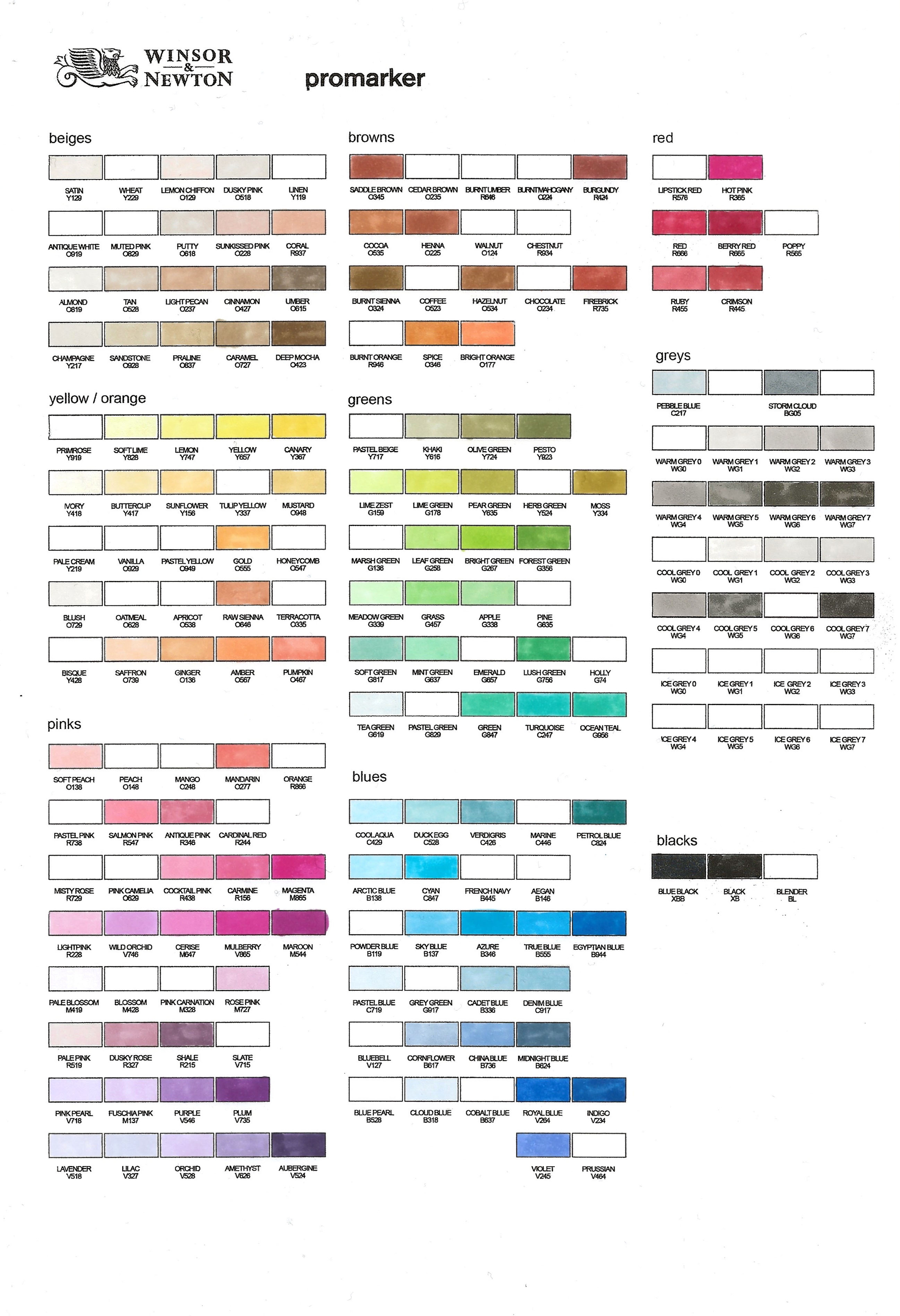 Promarker Swatch Winsor & Newton - Sorted by hue and value!!